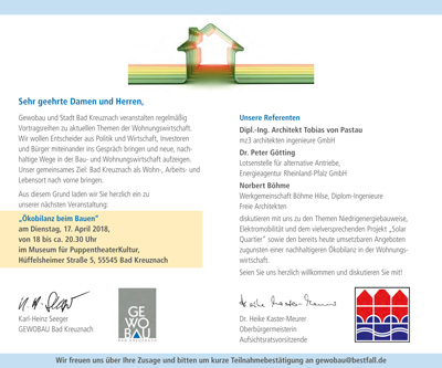 Norbert Böhme / Werkgemeinschaft Böhme Hilse referierte auf Einladung der Gewobau und der Stadt BadKreuznach über das Prinzip AktivPlus und dessen Umsetzung im Projekt „Solar City Bad Kreuznach“.
